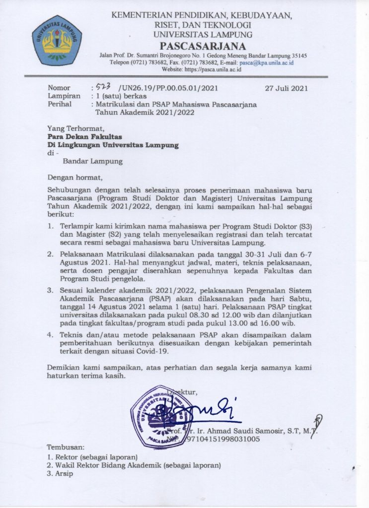 Program Studi Magister Agribisnis mengucapkan selamat datang kepada para mahasiswa baru. Semoga dimudahkan dalam menuntut ilmu di kampus hijau tercinta. Berikut kami sampaikan pengumuman mengenai jadwal matrikulasi dan PSAP (Pengenalan Sistem Akademik Pascasarjana). Terimakasih