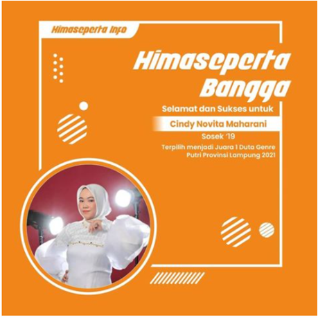 Selamat dan sukses untuk Cindy Novita Maharani (sosek ’19), terpilih menjadi JUARA 1 DUTA GENRE PUTRI TINGKAT PROVINSI LAMPUNG