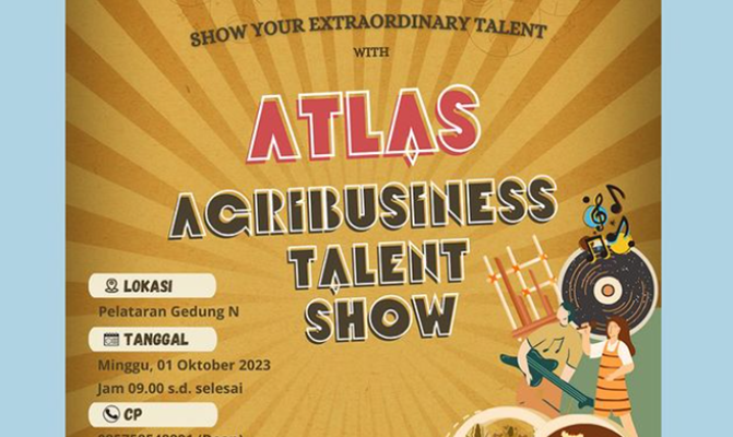 HIMASEPERTA PROUDLY PRESENTS: ✨AGRIBUSINESS TALENT SHOW 2023✨ Dengan tema ” Show Your Extraordinary Talent” ATLAS 2023 akan dilaksanakan pada: 🗓️ Hari/Tgl: Minggu, 1 Oktober