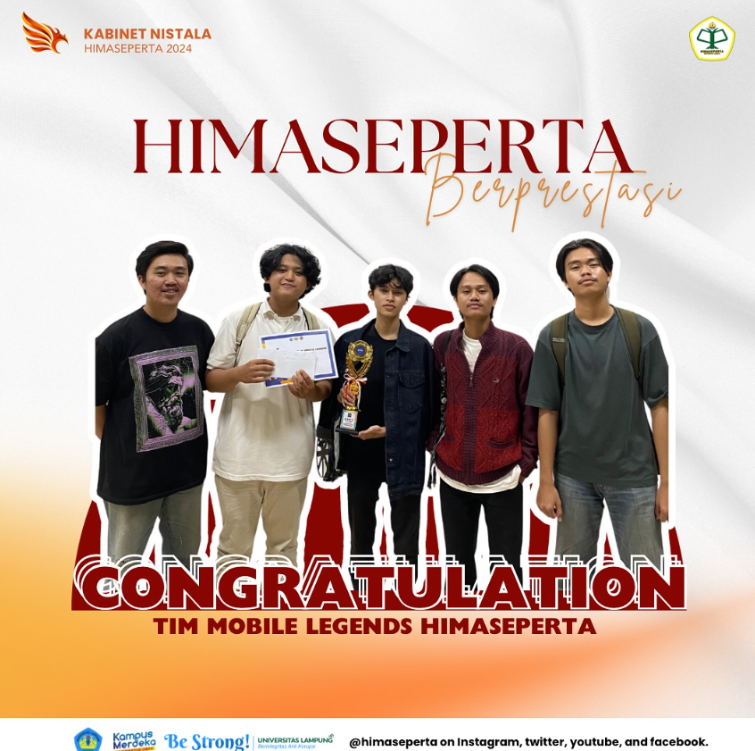 “Selamat dan sukses untuk tim Mobile Legends HIMASEPERTA atas capaian prestasinya sebagai Juara 2 tingkat universitas se-Lampung. Semoga terus berprestasi dan menginspirasi kita semua,” tulis akun resmi @himaseperta.