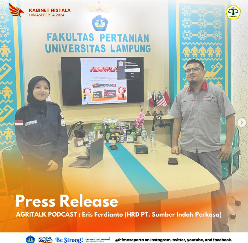 HIMASEPERTA Jurusan Agribisnis Fakultas Pertanian Universitas Lampung kembali hadir dengan inovasi inspiratif melalui kegiatan Podcast AGRITALK 2024 yang sukses diselenggarakan pada hari Senin, 1 Juli 2024.