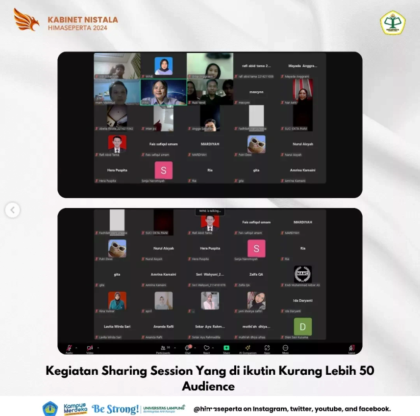 Kegiatan ini berlangsung secara online melalui Zoom Meeting, dan sukses diikuti oleh lebih dari 50 mahasiswa dari berbagai angkatan. Sharing session ini menjadi wadah berbagi inspirasi, pengalaman, serta strategi sukses dalam membangun usaha di usia muda.