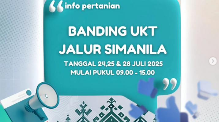 Fakultas Pertanian Universitas Lampung mengumumkan jadwal pelaksanaan proses banding Uang Kuliah Tunggal (UKT) bagi mahasiswa baru yang diterima melalui jalur Seleksi Mandiri Masuk Universitas