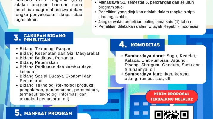 Program Indofood Riset Nugraha (IRN) Periode 2025–2026Tema: Penelitian Pangan Fungsional Berbasis Potensi dan Kearifan LokalDeadline Proposal Diperpanjang hingga 31 Agustus 2025 Indofood Riset Nugraha