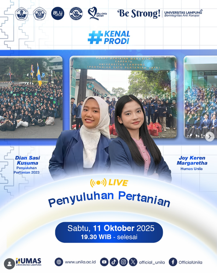 #FakultasPertanian#Mahasiswa#UniversitasLampung#Unila#AkuCintaUnila#UnilaBerdampak#UnilaBeStrong#BerintegritasAntiKorupsi