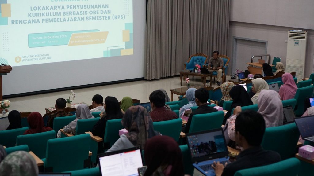 Dalam upaya meningkatkan mutu pembelajaran dan memperkuat implementasi kurikulum berbasis Outcome-Based Education (OBE), sebanyak 12 dosen Jurusan Agribisnis Fakultas Pertanian Universitas Lampung mengikuti kegiatan “Lokakarya Penyusunan Kurikulum Berbasis OBE dan Rencana Pembelajaran Semester (RPS)” pada Selasa, 14 Oktober 2025. Lokakarya ini berlangsung di Ruang A1 Fakultas Pertanian Unila mulai pukul 09.00 WIB hingga selesai.