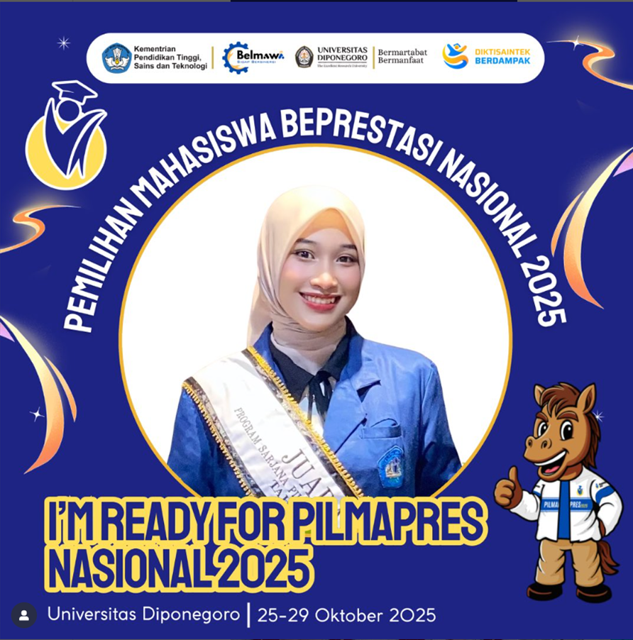 Prestasi gemilang kembali diraih oleh Rafifah Karimah, mahasiswi berprestasi dari Jurusan Agribisnis, Fakultas Pertanian Universitas Lampung, yang berhasil menjadi finalis dalam ajang Pemilihan Mahasiswa Berprestasi (Pilmapres) Nasional 2025. Kompetisi bergengsi ini diselenggarakan oleh Pusat Prestasi Nasional (Puspresnas) Kemendikbudristek RI dan dilaksanakan pada 25–29 Oktober 2025 di Universitas Diponegoro, Semarang.