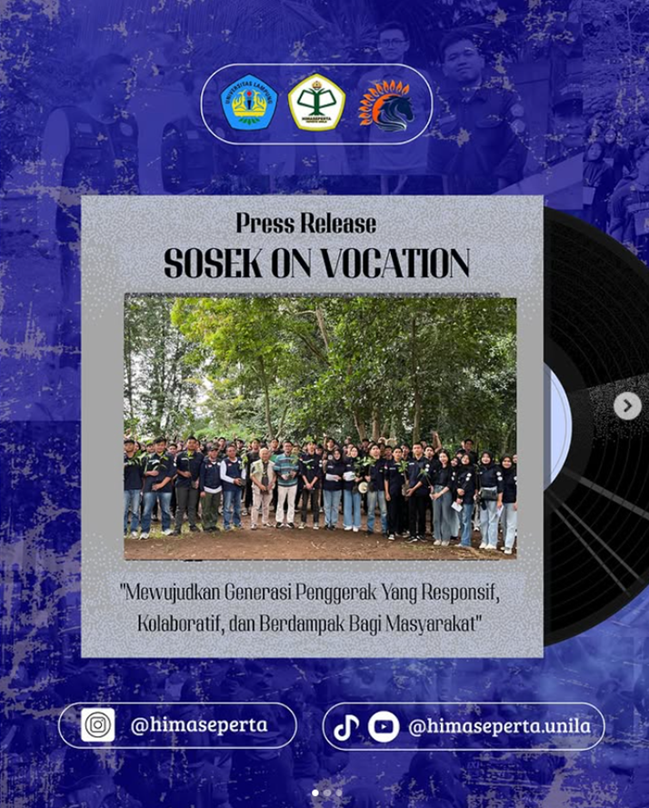 Melalui Sosek On Vocation 2025, HIMASEPERTA Universitas Lampung kembali menegaskan perannya sebagai wadah pembentukan karakter generasi muda pertanian yang berdaya saing, beretika, dan berjiwa sosial tinggi.