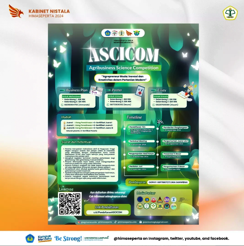 Hallo Sobat Nistala 👋🏻 Disini siapa yang hobi bikin Business plan, Poster, ataupun Essay? Nah untuk teman-teman yang punya hobi berkreativitas seperti diatas, Jangan lupa salurkan karya-karya kalian dalam kegiatan “Agribusiness Science Competition” yang diadakan oleh Mahasiswa/i Jurusan Agribisnis Universitas Lampung. Untuk Acara kali ini mengangkat tema “Agropreneur Muda yakni Inovasi dan Kreativitas Dalam Pertanian […]