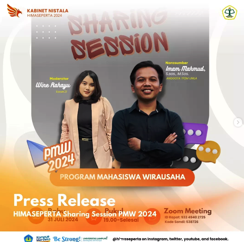 Bandar Lampung, 31 Juli 2024 — HIMASEPERTA Jurusan Agribisnis Fakultas Pertanian Universitas Lampung kembali menunjukkan komitmennya dalam mencetak generasi muda yang inovatif dan berdaya saing tinggi melalui kegiatan Sharing Session Program Mahasiswa Wirausaha (PMW) 2024. Kegiatan ini berlangsung secara online melalui Zoom Meeting, dan sukses diikuti oleh lebih dari 50 mahasiswa dari berbagai angkatan. Sharing […]