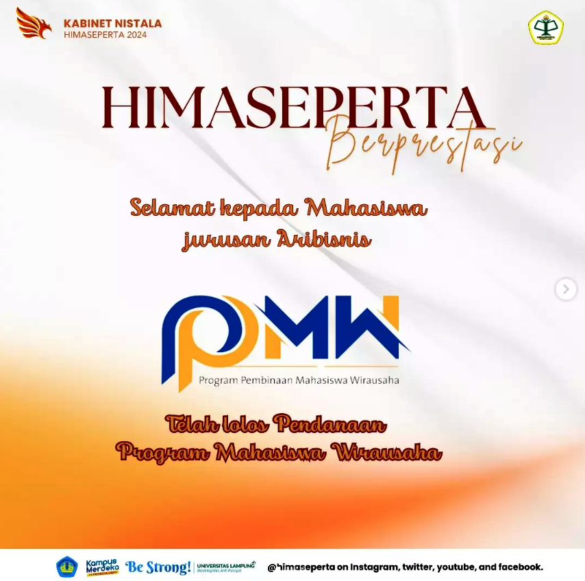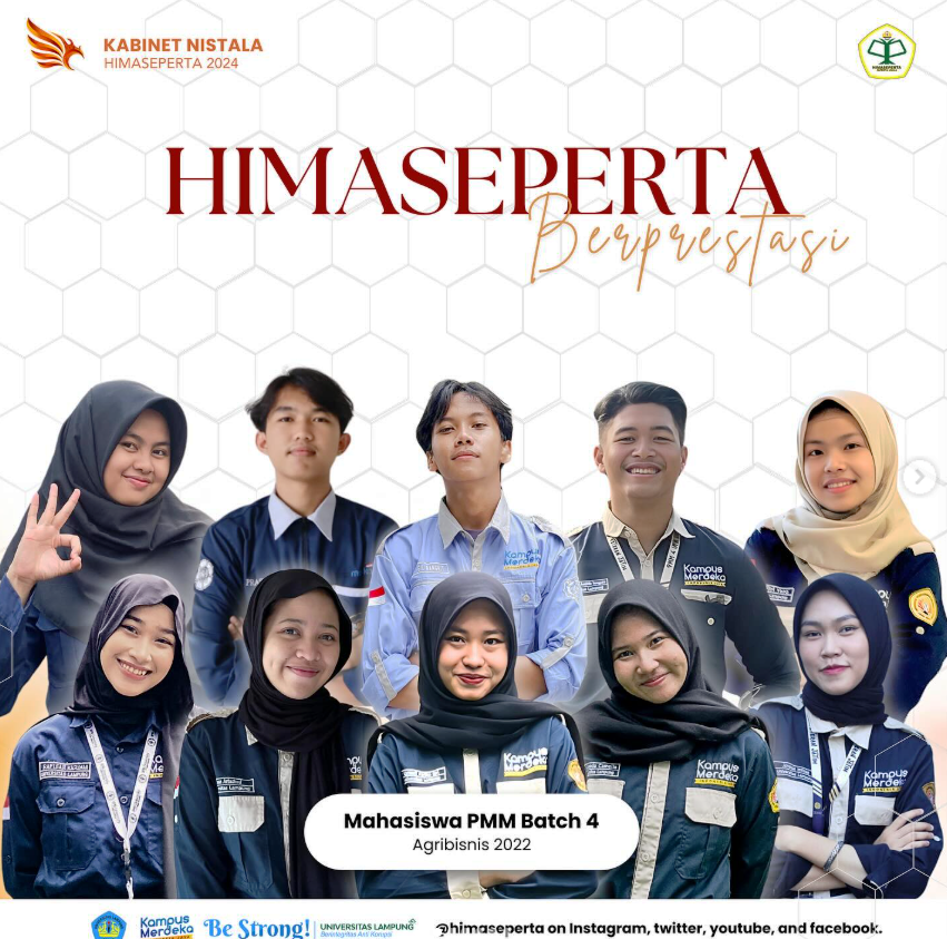 Kabar membanggakan datang dari mahasiswa Jurusan Agribisnis Fakultas Pertanian Universitas Lampung. Beberapa mahasiswa berhasil lolos pendanaan Program Mahasiswa Wirausaha (PMW) tahun 2024, yang merupakan program unggulan untuk mendorong semangat berwirausaha di kalangan mahasiswa. Menanggapi kabar baik tersebut, HIMASEPERTA melalui Kabinet Nistala 2024 menyampaikan apresiasi dan dukungan penuh atas pencapaian yang diraih. “Himaseperta Berprestasi, Selamat Kepada […]