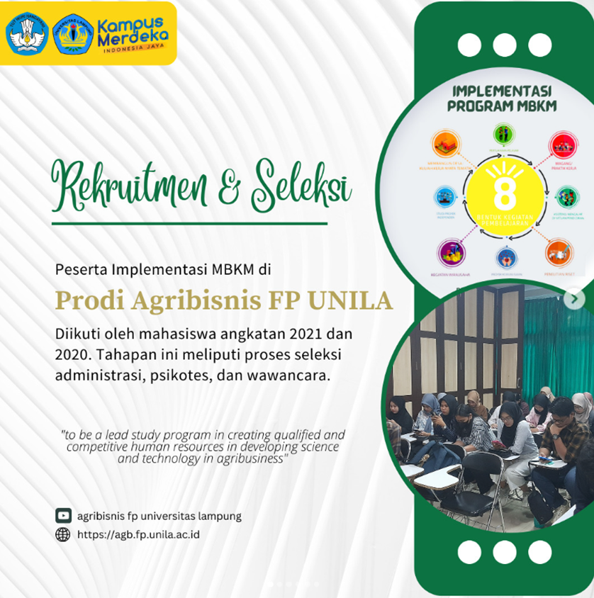 Rekrutmen dan Seleksi Implementasi MBKM PS Agribisnis FP Unila Tahun 2023