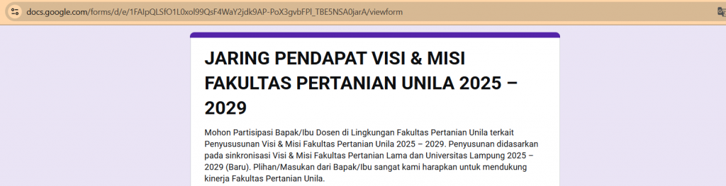 JARING PENDAPAT VISI & MISI FAKULTAS PERTANIAN UNILA 2025 – 2029